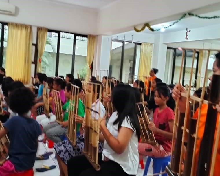Perform Angklung di Gereja St. Servatius Kampung Sawah